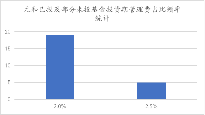 除此之外,有的基金会在投资期计提2.5%/年的管理费,如已投基金中的基金C和基金G。出现2.5%的高计提比例的情况主要可能是由于基金在管总规模偏小,且设立的投资期时间较短,需要较高的管理费来支撑基金正常运营,以此来保持正常的投资节奏。如基金G的基金规模仅为3500万,属于规模很小的基金。