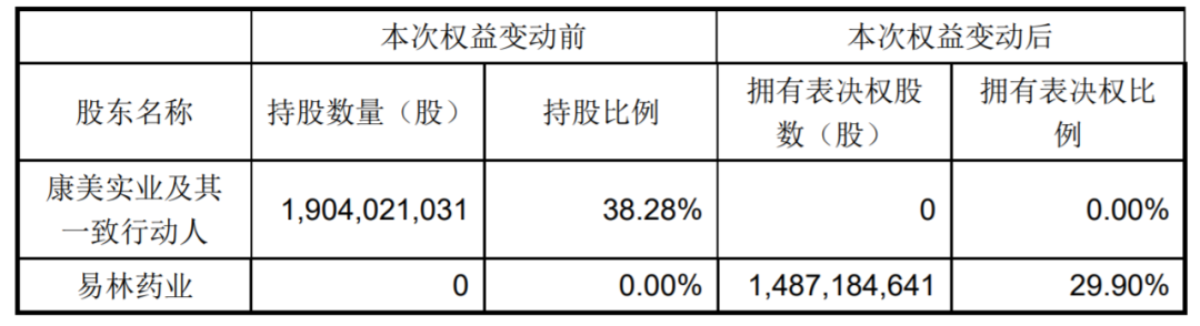 易林药业由广东省国资、揭阳市国资、广州市国资共同出资设立,2020年8月18日成立,注册资本2000万,成立以来未实际经营,无财务数据,股权结构如下:由易林药业作为托管实施主体,通过股份表决权委托/让渡、生产经营及资产债务处置托管等方式具体落实和推进化解康美药业资产债务风险、维持其生产经营稳定等各项工作。甲方将其合计控制的康美药业 38.28%股份按如下方式处理:1、甲方无条件且不可撤销地将其所持康美药业29.90%股份(对应1,487,184,641股股份,以下简称“委托股份”)对应的表决权及提名和提案权全权委托予乙方行使,且乙方系唯一的、排他的受托人(以下简称“表决权委托”);2、与之同步,自表决权委托生效之日起并在表决权委托有效期内,甲方无条件且不可撤销地放弃其控制的康美药业剩余 8.38%股份(对应 416,836,390 股股份,以下简称“放弃表决权股份”)对应的表决权及提名和提案权(以下简称“剩余股份表决权放弃”)。根据让渡方与易林药业签署的《表决权让渡协议》,易林药业持有康美药业表决权的情况如下表所示:让渡股份对应的除表决权及提名和提案权之外的股东权利及全部股东义务、责任和风险,仍由甲方享有及/或承担。乙方行使让渡股份对应的表决权及提名和提案权产生的相关义务、责任和风险由甲方承担。未经乙方事先书面同意,甲方不得通过任何方式将其控制的康美药业股份中的任意股份交予任何第三方持有或管理;甲方亦不得对其控制的康美药业股份中的任意股份进行处置,包括但不限于转让、设置质押或任何其他第三方权利负担,于《表决权让渡协议》签署日已设定的质押除外。为妥善、有序推进、化解康美药业目前面临的债务风险及生产经营不稳定等问题,同意丙方在生产经营托管期间内,独家、无条件且不可撤销地委托乙方通过依法行使股东权利、提名董事、推荐经营管理团队、委派托管专项小组等合法合规的方式对丙方(包括丙方下属子公司,以下简称“托管标的”)的生产经营实施全权托管,且乙方系唯一的、排他的受托人。托管标的应向托管专项小组指定的相关人员交付财产、公章、财务章、合同章、营业执照、会计账簿和凭证、重大合同、文书等资料,且双方应就此交接行为及其交接内容进行书面确认,托管专项小组指定的相关人员应妥善保管托管标的交接的各项文件、资料,丙方对该等交接文件、资料的真实性、准确性和完整性负责并承担责任;如交接前有文件、资料遗失的,丙方应承担相应责任。甲方和丙方自委托期限开始之日起,无条件且不可撤销地委托乙方通过依法行使股东权利、提名董事、推荐经营管理团队等合法合规的方式对康美药业资产负债处置、资金流动性问题解决等财务金融事宜实施全权筹划、管理和处分,且乙方系唯一的、排他的受托人。为本次资产负债托管及处置目的,《资产负债托管及处置协议》生效后,在符合相关法律法规和康美药业公司章程的前提下,托管标的应向托管专项小组指定的相关人员交付财产、公章、财务章、合同章、营业执照、会计账簿和凭证、重大合同、文书等资料,且双方应就此交接行为及其交接内容进行书面确认,托管专项小组指定的相关人员应妥善保管托管标的交接的各项文件、资料,丙方对该等交接文件、资料的真实性、准确性和完整性负责并承担责任;如交接前有文件、资料遗失的,丙方应承担相应责任。乙方仅是为本次托管目的、接受对托管标的资产负债的托管,考虑到丙方的实际生产经营情况及资产负债情况,各方同意并确认,甲方、丙方因《资产负债托管及处置协议》项下乙方资产负债托管及处置产生的收益(如有)由甲方、丙方各自享有,产生的风险、损失、义务、债务(包括但不限于因行使本次资产负债托管及处置项下相关权利产生的法律后果)(如有)由甲方、丙方各自承担,乙方不承担任何责任。乙方受托管理托管标的,不构成任何意义上对托管标的生产经营情况及资产负债情况的承诺或担保。各方确认,若乙方因为行使《资产负债托管及处置协议》项下的资产负债托管及处置权利与第三方产生任何争议或纠纷的,甲方、丙方应当全力协助乙方解决。乙方承诺,将遵循公开、公平、公正原则依法依规处置托管标的的资产与负债。自《合作协议》签署之日起至委托期限届满期间,应尽可能通过一切合法方式确保康美药业的法定代表人和董事长不发生变更,乙方书面同意的情形除外。乙方有权向康美药业推荐董事、监事、总经理、常务副总经理、副总经理、财务总监、董事会秘书及其他高级管理人员人选,甲方及其关联方应通过一切合法且必要的方式确保乙方提名/推荐的人选合法合规当选。为覆盖乙方本次托管项下的运营成本,就本次托管项下的生产经营托管及资产负债处置托管事项,丙方每 6 个月应向乙方支付人民币 400万元托管费用。托管期限届满时,甲方应当将其合计控制的康美药业的股份的账面价值超出甲方合计控制的丙方质押股份对应的债务总额的增值部分的33%作为奖励支付给乙方或乙方指定方并在 30 日内支付完毕。计算公式如下:甲方应当支付给乙方的奖励 = (托管期限届满日(不含当日)前 20 个交易日丙方股票交易均价 * 甲方届时控制的康美药业的股份总数 — 甲方届时控制的丙方质押股份对应的债务总额)* 33%