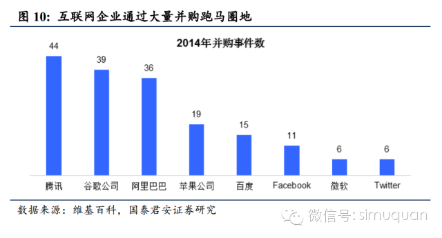 国内互联网其实也在重复上演同样的故事。国内互联网创业圈中一个相对默契的目标就是被TABLE(腾讯,阿里,百度,小米和奇虎)收购,隐含的逻辑亦是如此。由于这种规模效应,收购方和被收购方取得共赢。收购方往往愿意支付一个较高的溢价。