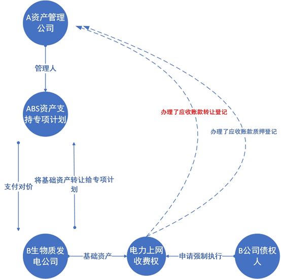 本案当中,法院判决并未直接阐述应收账款转移登记对于对抗B生物质发电公司债权人主张的效力问题,而是主要根据当事人之间签订的应收账款转让协议这一合同行为。该合同行为,就是前述应收账款权属变动的法律原因。一旦当事人对该合同真实性提出异议,作为资产支持证券管理人,能够提供的最有力的证据,自然就是应收账款转让的登记文件。因此,该登记对于维持资产支持证券中资产的确定性和安全性意义重大。