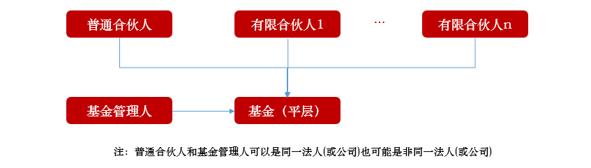 平层基金是普通合伙人(GP)和各有限合伙人(LP)在收益分配时无保本保收益及分配先后顺序无特殊安排的基金,如下图: