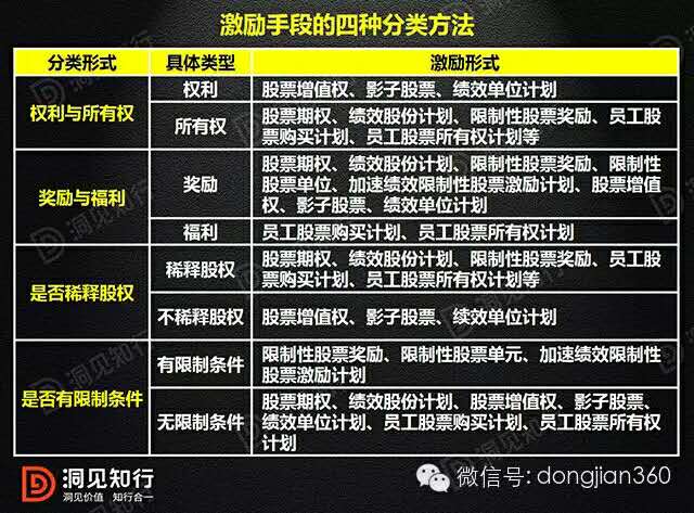 ?利益分成:主要有股票增值权、虚拟股票,或直接的工资奖金。利益分成主要是一事一结,短期激励。