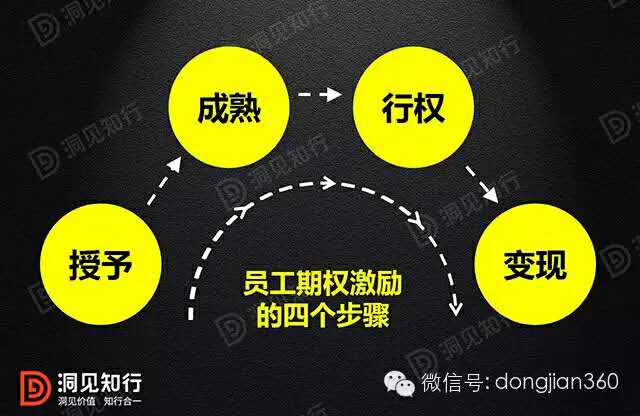 员工期权激励,会经历四个步骤,即授予、成熟、行权、变现。