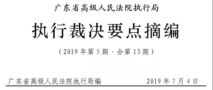 编者按:本裁决要点摘自广东省高级人民法院执行局作出的已发生法律效力的执行裁定文书,供全省法院执行局办理执行案件时参考。