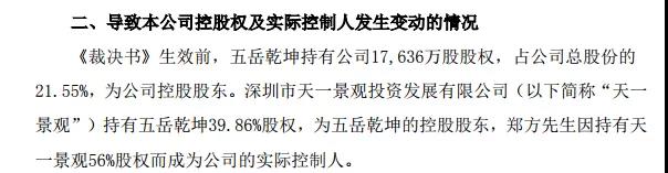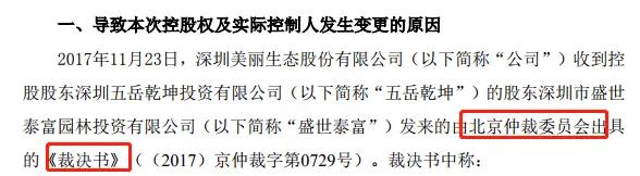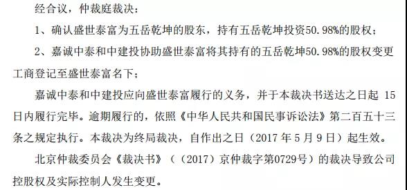 这个仲裁是原控股股东自己的股权被仲裁给了别人,而控股股东持有上市公司的股权没有变。导致的结果是控股股东没变,但实际控制人变更了,公司的控制权也就跟着变了。