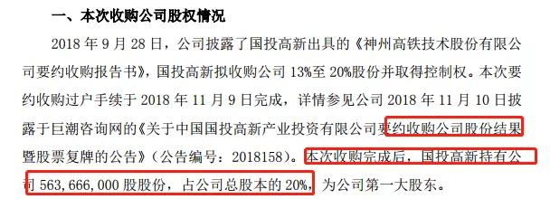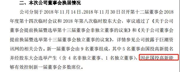 国投高新在要约收购实施完成后,拥有了20%股权,然后改组了董事会,推举过了过半数的董事,对上市公司实施了控制。