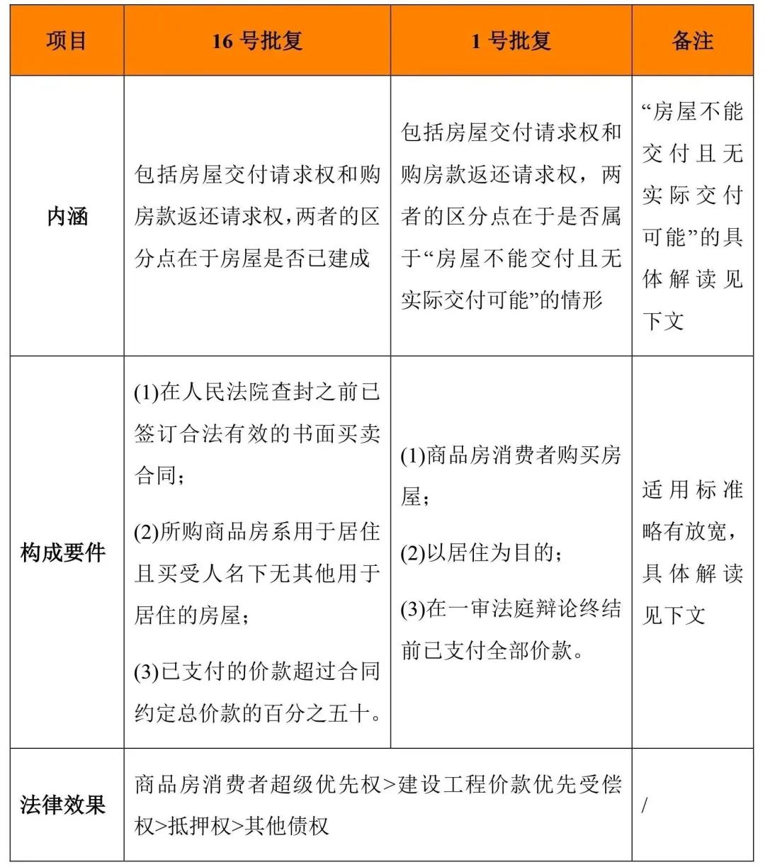 在原16号批复已于2021年失效的背景下,1号批复的出台对于重新填补商品房消费者超级优先权的司法保护空白有着重要意义,有效解决了房地产开发企业债务危机带来的民生问题,也在一定程度上起到了恢复购房者信心从而稳定房地产市场的积极作用。但是,我们也要认识到,为推动房地产市场长期健康稳定发展,还需要完善以资金监管和强制保险机制为核心的商品房预售制度。同时,我们也提请读者注意,相关立法和司法实践赋予商品房消费者超级优先保护的初衷在于保护其最基础的生存权,其在宽松化解释的趋势下仍有较为严格的适用标准,某些具体适用边界条件仍有待司法实践的进一步检验。