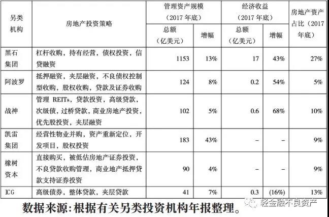 国际另类投资机构以不良资产业务为主的并不多,但在其发展和壮大过程中,无论是主动进入不良资产领域追求高收益,还是由于经济金融危机被动投资不良资产,国际另类投资机构的成长或多或少都得益于不良资产业务的开展,而不仅限于不良资产投资。