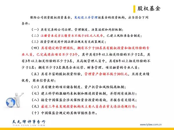 (1)设立阶段。对被投资的私募基金有一定的要求,不管是保险资金直接投资基金,还是通过股权投资计划投资基金,都应当符合《保险资金投资股权暂行办法》(保监发〔2010〕79号)第10条规定的十大条件。其中,就“发起设立并管理该基金的投资机构,应当符合以下条件……” 中“发起设立并管理”怎么理解?如果从文义上理解,一般只有私募基金中的GP才有可能是发起设立并管理的主体,但是实践中往往GP和管理人是不同主体,在此情况下,管理人符合条件也是认可的。