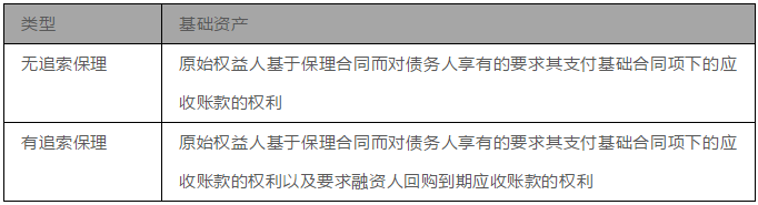保理合同根据保理商对受让的应收账款有无追索权,可以分为有追索权合同和无追索权合同,根据保理合同的不同约定,保理融资债权作为基础资产的情形如下表所示: