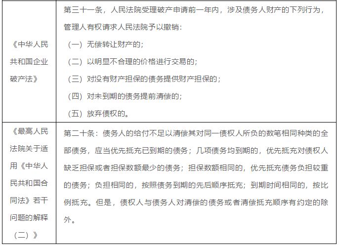 根据《中华人民共和国企业破产法》第31条第2项的规定,“人民法院受理破产申请前一年内,债务人的财产以明显不合理的价格进行交易,管理人有权请求人民法院予以撤销。”《最高人民法院关于适用<中华人民共和国合同法>若干问题的解释》(二) 第十九条“明显不合理的低价”,人民法院应当以交易当地一般经营者的判断,并参考交易当时交易地的物价部门指导价或者市场交易价,结合其他相关因素综合考虑予以确认。转让价格达不到交易时交易地的指导价或者市场交易价百分之七十的,一般可以视为明显不合理的低价;对转让价格高于当地指导价或者市场交易价百分之三十的,一般可以视为明显不合理的高价。