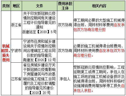★关于机械停滞台班费用等问题江浙地区政策规定