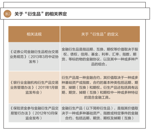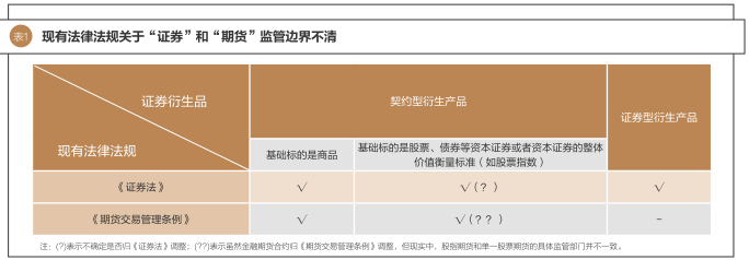 《期货法》的调整范围“期货”和表2中相关法规提到的“衍生产品”有区别也有重叠。