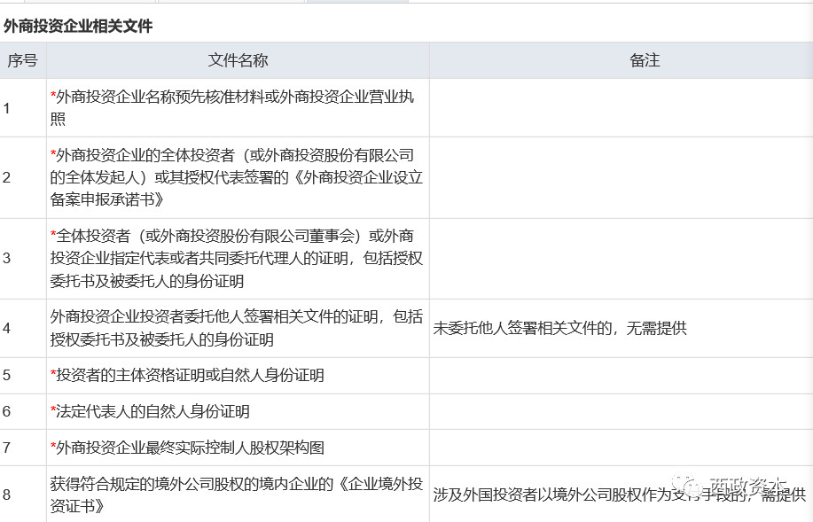 外商投资综合管理应用系统平台需填报的内容包括企业基本信息、投资者基本信息,并需上传如下资料: