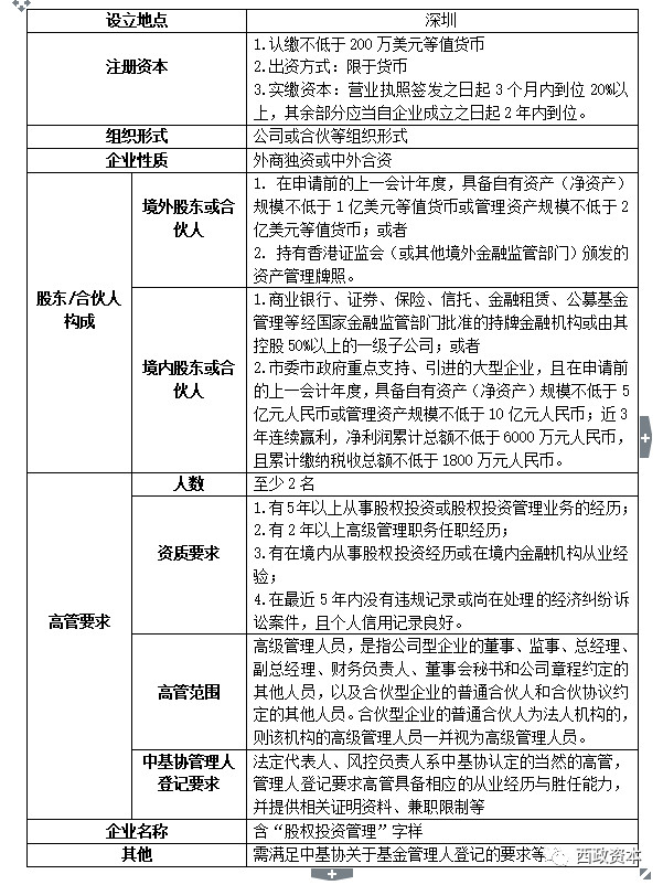 取得外商投资股权投资企业试点工作领导小组(在金融办下设办公室,以下称“领导小组办公室”)业务资格文件——前海管理局工商登记——办理外商投资备案及入驻手续——中基协基金管理人登记——根据中基协要求,管理人登记完成后6个月内发行首支产品