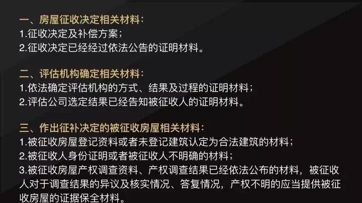 作出征收决定需要的材料,每个地方的具体规定可能不一样。我们的经验是通过当地中院有关征收决定的判决书来确定,判决书中被告举证的证据清单,实际上就是作出征收决定需要的材料。