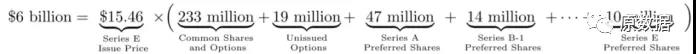 在投后估值的计算公式中,享受这些权利的Square E轮股权,和之前的A、B、C、D轮股权相加在一起,变成总股本(3.88亿股),再乘以E轮每股价格15.46美元,得到投后估值60亿美元。但其实这些股票都具有不同的现金流权利、清算权利、控制权和投票权。