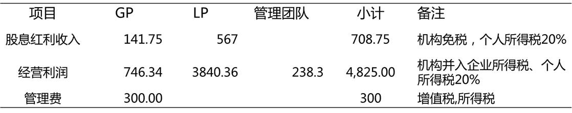 支出:主要有GP管理报酬、托管费用、财务审计费、律师费、诉讼费、会议费、工商费用、股权交易费用等等。