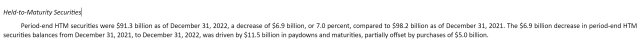 2022年底,硅谷银行持有到期证券总价值913亿美元,全年缩水69亿美元