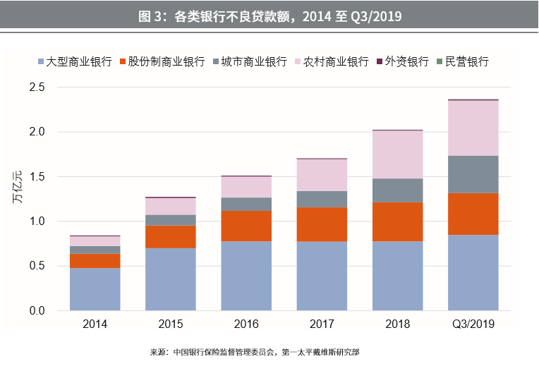 中国各类银行不良贷款额
