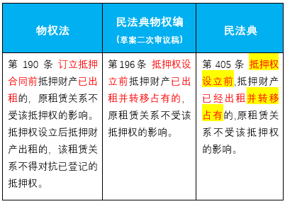 《民法典》第405条规定强调了“转移占有”,抵押权人可以通过尽调的方式进行了解,判断抵押权是否安全。未来如果出现恶意倒签合同的情况,抵押权人根据尽调所固定的证据可满足维权的要求,即在设定抵押时没有转移占有,因此租赁权不得优先于抵押权,可以实现更好的债权保护效果。同时,《民法典》第405条将抵押权设立时间作为判断权利次序的依据,修正了《物权法》第190条规定存在“双重标准”的瑕疵。