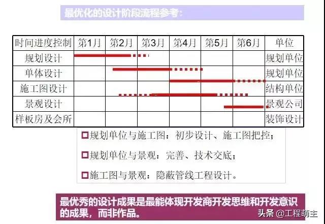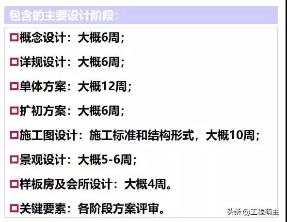 设计部:编制方案设计任务书——规划设计方案评审(含单体设计方案)——景观方案评审——初步设计成果评审(含基坑支护设计图)——建筑施工图评审(含基础设计图)——正式施工图评审。