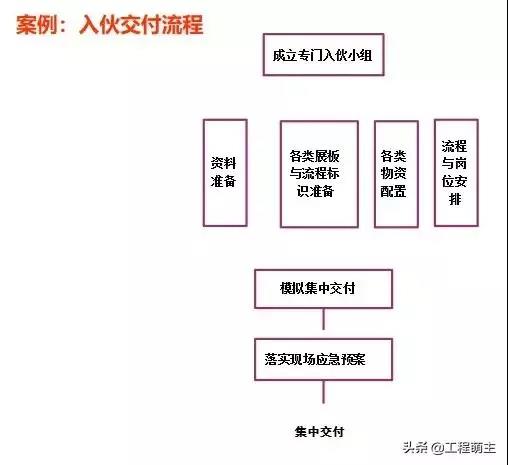 客服、物业部:入伙方案、风险排查、组织入伙、客户投诉处理、后续服务跟进。