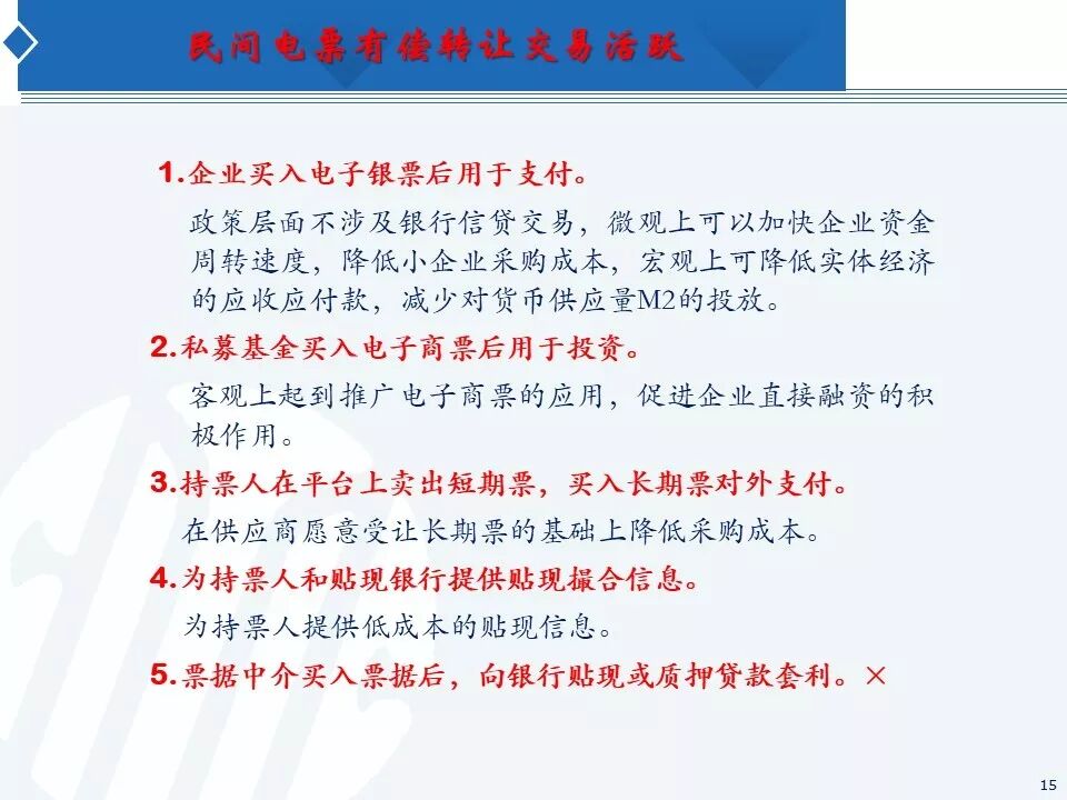 (5)持票人寻求具有对承兑人贴现授信且低利率的贴现银行;如此这些电票市场的衍生交易,形成了民间票据交易市场存在的客观需求。
