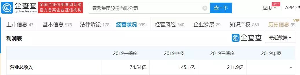 2019年1-11月,泰禾集团全口径销售金额689.2亿,排名42位;权益金额为527.7亿,排名第40位。营业收入前三季度更是不到500亿。