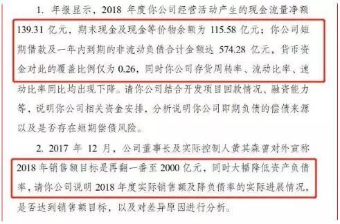 要求其说明:115亿现金如何应对574亿短债,2000亿元的销售目标是否达成。