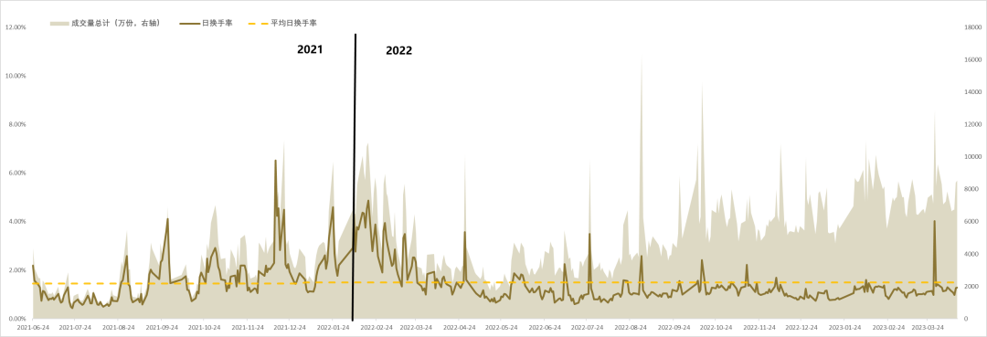各产品上市至今的日均换手率方面,除临港产园REIT、东久产园REIT外,其他C-REITs各产品上市至今的日均换手率都在3%以下。C-REITs换手率处于1%-3%之间,是投资人长期持有公募REITs的反映,也比较符合监管对C-REITs市场的预期。