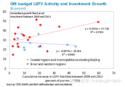 图为各地区间城投平台规模与固定资产投资增速关系不同