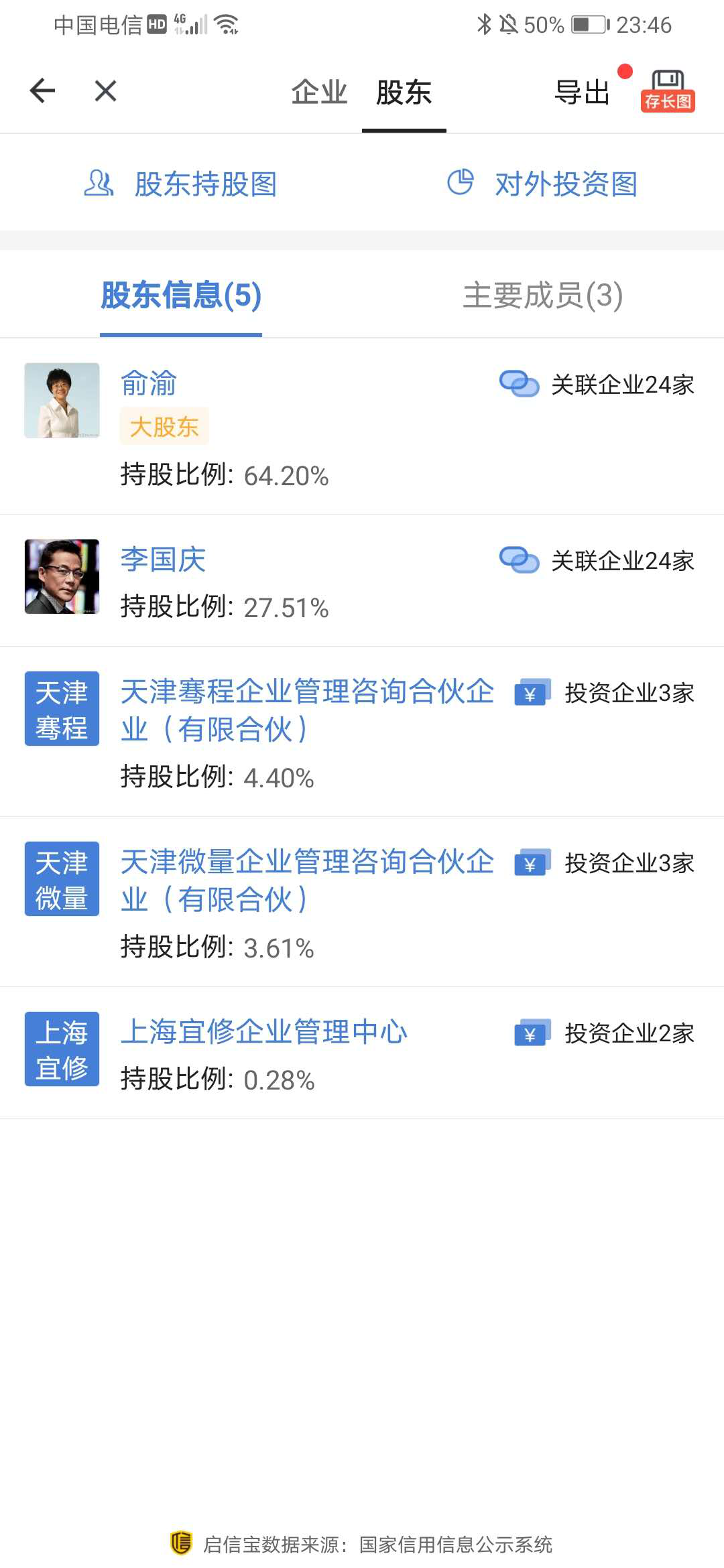 这实际上是,公司法上一个常见的问题,即公司的印章证照资料到底应该由谁来保管?实际上,这是公司法上的一个留白,公司法并没有明确规定,公司的印章、证照、资质、资料等由谁来保管。当发生抢公章的事件时,法官一般会看公司章程是否有规定,如果有规定则按章程处理;如果没有规定,则判决由法定代表人保管,理由是公司的印章证照资料等均属于公司财产,而法定代表人有权代表公司,当然有权持有并保管印章证照资料。为了验证李国庆说的对不对,我在在启信宝搜了当当的股权结构和董事会结构,原来当当的股权结构是这样的: