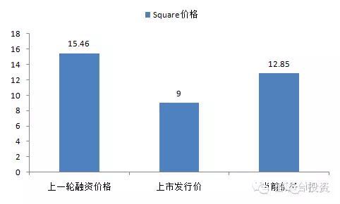 Square从2014年9月至2015年10月刚完成公司最后一轮融资。该公司在本轮融资中募集到1.80亿美元资金,对应每股股价为15.46美元。根据Square向美国证券交易委员会提交的招股说明书显示,如果公司首次公开招股价格低于最后一轮融资时的股价,参与最后一轮融资的投资人将会获得额外的补偿。Square倒数第二轮融资在2012年9月完成,当时对该公司的估值为每股11.01美元。