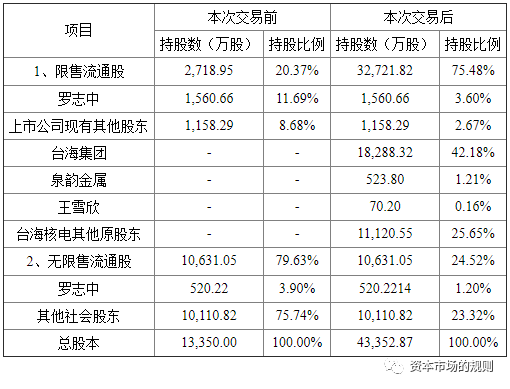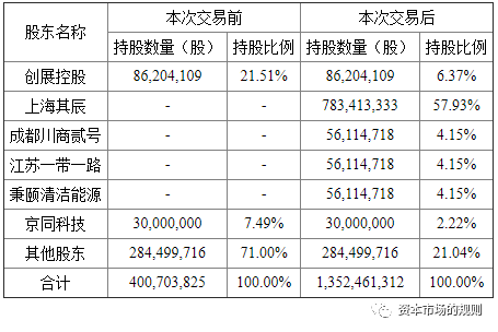 借壳后新大股东持股比例