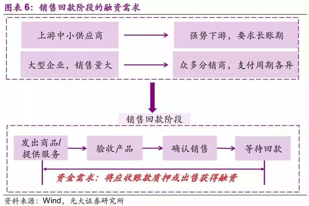 从销售完毕至等待回款这个阶段,形成了应收账款,这个阶段的融资需求都是为了加快销售回款。通常也可以分为两种情况: