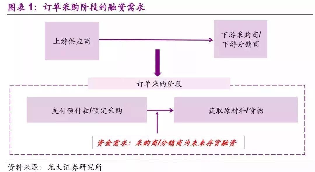 订单采购阶段相应的是预付账款环节,采购方作为资金需求方为了预定采购、获取货物而进行的融资,可以理解为未来存货的融资。通常,根据采购的定位不同,分为两种状态: