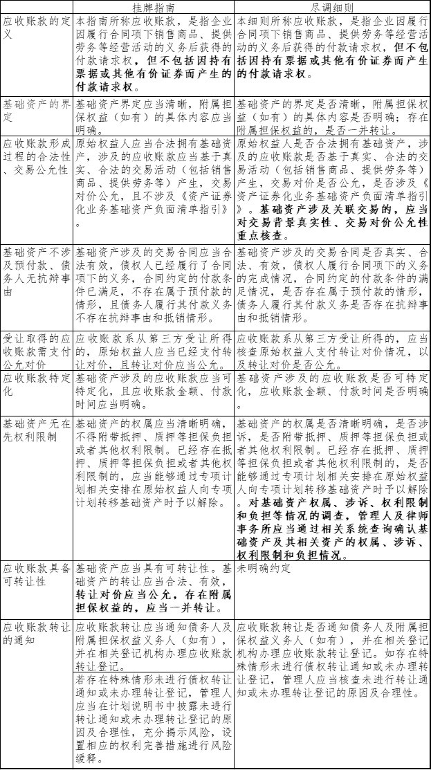 无论选择何种模式,供应链ABS的核心法律要点始终是对基础资产(即基于供应链形成的应收账款)进行确权,在此基础上完成转让应收账款、设立专项计划、归集回收款的安排。应收账款真实、合法、无瑕疵是供应链ABS产品成功发行的前提,应收账款的确权也是尽职调查的重点和难点。 针对应收账款作为基础资产的核查,上海证券交易所、深圳证券交易所及机构间私募产品报价与服务系统分别发布了《企业应收账款资产支持证券挂牌条件确认指南》(以下统称“挂牌指南”),中国基金业协会也针对性地出台了《企业应收账款资产证券化业务尽职调查工作细则》(以下简称“尽调细则”)。《挂牌指南》和《尽调细则》主要从以下方面对基础资产应收账款作出了规定:可以看出,《挂牌指南》和《尽调细则》在对应收账款核查的原则基本一致,且《尽调细则》更多地从实际操作角度对核查内、核查方法进行了详细规定。根据《挂牌指南》及《尽调指引》的定义,应收账款是指企业因履行合同项下销售商品、提供劳务等经营活动的义务后获得的付款请求权,但不包括因持有票据或其他有价证券而产生的付款请求权。应收账款确权为什么难,难点主要集中在基础交易环节的复杂与信息不对称,依赖于债权人与债务人在履行基础交易过程中的信息记录,如发生错误记录、虚构记录或隐瞒记录,都会导致应收账款的真实性、合法性出现重大风险。根据《挂牌指南》规定,基础资产涉及的交易合同应当合法有效,债权人已经履行了合同项下的义务,合同约定的付款条件已满足,不存在属于预付款的情形,且债务人履行其付款义务不存在抗辩事由和抵销情形。因此,应收账款确权是一项系统性的工作,需要结合现有的信息,明确债权人对债务人享有的具体付款请求权,排除债务人对该请求权的抗辩权。而对于应收账款的确权开展的法律尽职调查,也主要从两个角度出发:(1)核查基础合同项下债权人付款请求权的真实性;(2)核查债务人对于基础合同项下付款义务的完整性。 判断合同的合法有效性主要依据为《合同法》第五十二条,“有下列情形之一的,合同无效:(一)一方以欺诈、胁迫的手段订立合同,损害国家利益;(二)恶意串通,损害国家、集体或者第三人利益;(三)以合法形式掩盖非法目的;(四)损害社会公共利益;(五)违反法律、行政法规的强制性规定。”在法律尽职调查过程中,需结合基础合同条款约定,逐一进行排查。除上述总体原则外,还需结合基础合同所涉行业的特别法进行判断。以建筑工程施工合同为例:《最高人民法院关于审理建设工程施工合同纠纷案件适用法律问题的解释》(法释[2004]14号)第1条规定,“建设工程施工合同具有下列情形之一的,应当根据合同法第五十二条第(五)项的规定,认定无效:(一)承包人未取得建筑施工企业资质或者超越资质等级的;(二)没有资质的实际施工人借用有资质的建筑施工企业名义的;(三)建设工程必须进行招标而未招标或者中标无效的”。《最高人民法院关于审理建设工程施工合同纠纷案件适用法律问题的解释(二)》(法释〔2018〕20号)第2条规定,“当事人以发包人未取得建设工程规划许可证等规划审批手续为由,请求确认建设工程施工合同无效的,人民法院应予支持,但发包人在起诉前取得建设工程规划许可证等规划审批手续的除外。”因此,在核查建筑工程施工类基础合同时,则需要结合上述规定,审查承包人的建筑施工企业资质与基础合同的施工项目是否匹配、实际施工人与基础合同约定是否相符、审查该项目是否为招标项目、是否取得中标通知书、基础合同对应的项目是否取得建设工程规划许可证等。在基础合同合法有效的前提下,审核基础合同项下交易的履行情况。这也是实践中最大难点之一,不同企业(包括同一集团公司项下的多家子公司),在不同基础交易类型项下,在履行凭证的记录、保留及提供方面都可能存在巨大差异。试以供应链ABS中最常见的两类基础交易类型对交易履行情况的审核要点进行梳理:若基础合同为货物贸易类,如供货/采购合同等。首先审查基础合同卖方交付货物条款,包括货物交付的流程、时间、是否需要验收、完成交付的确认文件等;其次审核买方出具的确认卖方义务已履行的确认文件(如付款确认书);如买方未出具独立的履行确认文件,则需结合基础合同条款约定,审核发货单、提货单、验收单、物流单等卖方履约文件是否与交付条款相匹配,买方开具的发票金额是否与应收账款金额相符,确保履约文件具备关联性和一致性。对于分期付款类的合同,还需核查前期款项是否已足额支付;最后,可结合卖方(债权人)内部管理制度确认,如可通过访谈了解卖方采取何种记账方式、卖方内部记账与履行文件发生冲突时的解决途径等。若基础合同为建筑工程类,如工程施工合同/承包合同等。首先审查基础合同对于工程开工、工程量的计量与确定、工程验收、结算方式等条款,常见条款为按月或按季度根据当期工程量进行结算;其次审核承包方履约证明文件,需注意的是,建设工程项目一般有监理方参与。对于尚未达到竣工条件的项目,则需审核项目进度付款文件(经监理、发包人、承包方共同确认的),如产值审批单、付款审批单等;对于已达到竣工条件且正在办理竣工验收结算的项目,除上述文件外,还需补充