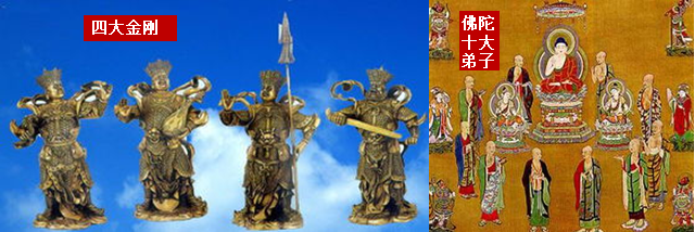 非官方解释:四大金刚+佛陀十大弟子