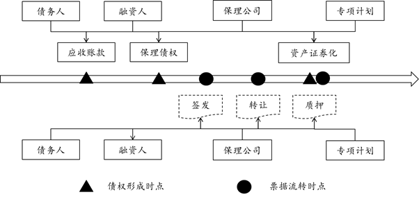 进一步而言, 针对市场上存在的对于保理公司受让票据是否涉及从事票据贴现业务的观点(也即在没有真实交易关系或债权债务关系的情况下受让票据的行为与票据贴现业务相类似, 故受让方可能被认定为从事票据贴现业), 与票据相关的供应链金融资产证券化项下, 保理公司受让应收账款向供应商提供保理融资服务时, 应收账款尚未以开立票据的方式进行支付或结算, 应收账款合法有效存续。