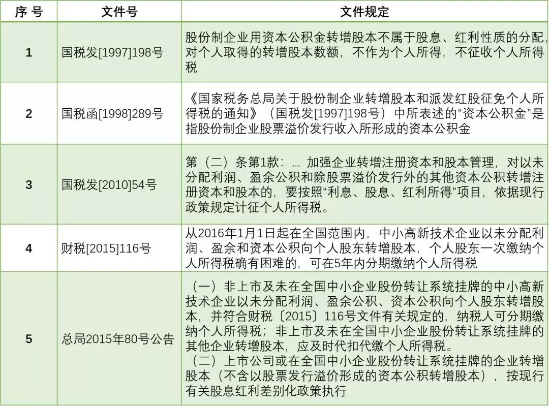 以上就是财政部、国家税务总局涉及资本公积转增实收资本或股本是否要缴纳个人所得税相关的所有文件。另外还有一个与此相关的特别文件我们后面说。