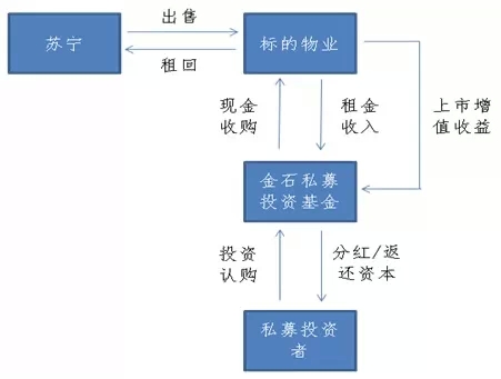 中信此次瞄准苏宁云商的O2O门店,可以看作是中信证券REITs模式向商业化迈出的重要一步。在5月上市时“中信启航”只是一个私募版本,到此次跟苏宁云商合作,依然是以金石私募投资为平台的私募版本。这就意味着,对于投资人会做出一定要求,并非面向大众的公募型产品。合作的金石私募投资基金作为中间方,面对私募投资者同时也对接标的物业,完成整个地产投资基金产品闭环。
