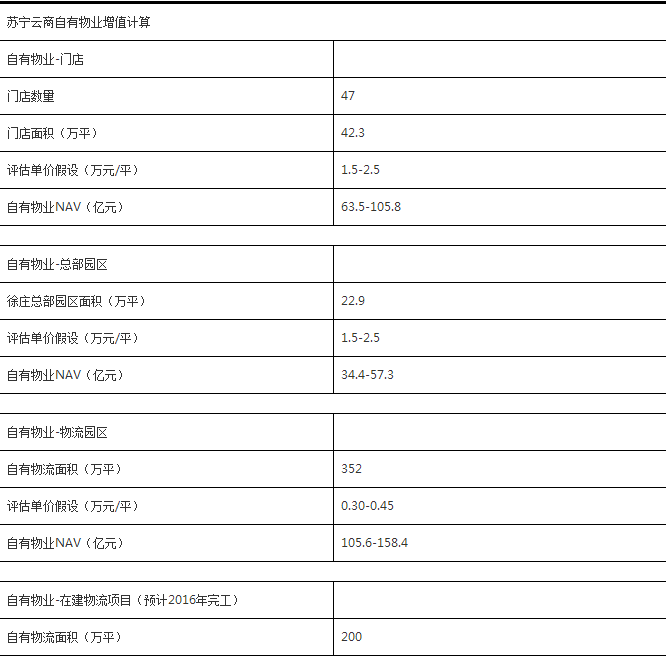 2)苏宁徐庄总部园区合计约22.9万平方米(东区18.1万平方米,西区4.8万平方米),基于周边写字楼均价,我们判断其市场单价1.5-2.5万元/平方米;