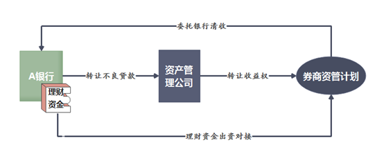 1、在不良这一模式中,A银行先将不良资产转让给资产管理公司,资产管理公司再将不良资产收益权转让给券商资管计划或信托计划,A银行再通过理财资金对接券商资管计划或信托计划受让不良资产收益权,整个过程中,资产管理公司和券商均充当通道角色,实际为理财产品间接对接本行信贷资产收益权,实现不良资产的非真实出表。其业务实质为银行通过资产管理公司和券商等通道规避了资产质量。