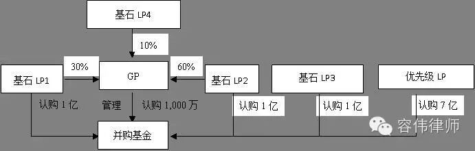 律师为本次并购基金推荐了信托产品普遍采用的“结构化概念”,即将投资人(LP)分为优先和基石两个等级,二者间的差异主要体现在收益分配方式和顺序上。这种创新的方式改变了PE业界在国内外通行的二八分成模式,意在满足了不同风险偏好投资人的投资需求。本次并购基金共引入优先级有限合伙人3位,基石有限合伙人3位,普通合伙人1位。
