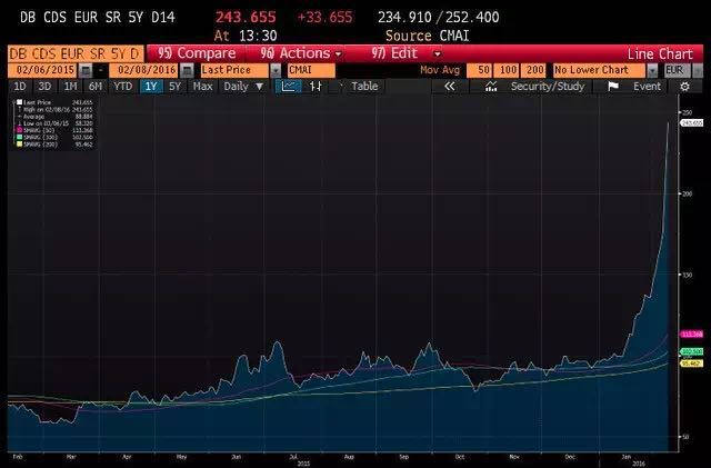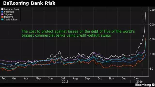 不过这一次,风暴眼在欧洲。德意志银行(以下简称德银)最近让人极为担忧。刚进入2016年,德银就跌去近四成市值,目前德银的股价甚至已经低于2008年全球金融风暴的最低点。在2月8日那天德银大跌8%,2月9日盘中最大跌幅达5%,后来在考虑回购几十亿欧元债券的消息推动下,跌幅收窄至1%。