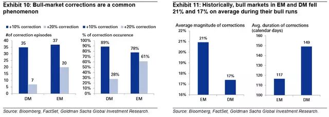 报告称,牛市中出现大幅回调是很常见的: