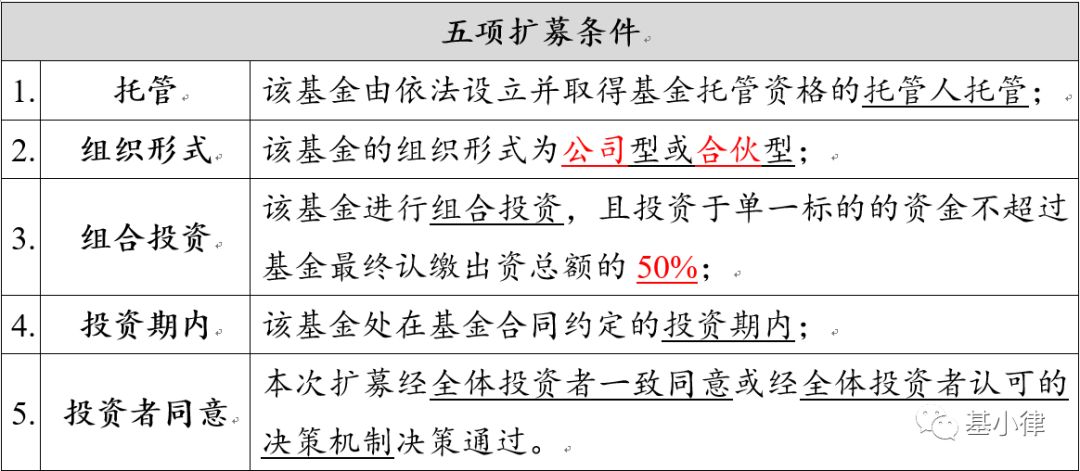 本次《备案须知》对于私募股权基金最重要的约束,即为明确私募股权基金原则上应当封闭运作,在备案完成后不得开放进行申购或者赎回;作为例外,私募股权基金须同时满足五项扩募条件,方可在基金备案完成进行扩募(增加投资者的数量/认缴出资额);即使在满足前述五项扩募条件的前提下,私募股权基金后续增加的认缴出资额亦不得超过备案时认缴出资额的3倍,即基金最大募集规模在基金备案时即已确定;为免疑义,《备案须知》亦明确私募股权基金运作期间的分红、退出投资项目减资、对违约投资者除名或替换以及基金份额转让不属于对封闭运作的突破。