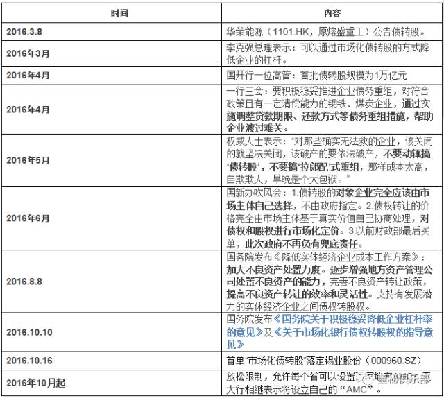 严格意义上,债转股是传统类不良资产处置的一种,即通过将收购的不良债权资产转化为股权的方式。但是由于债转股有政策的渊源,已经演变成为专有名词,再加上2016年是新一轮“市场化债转股”的元年,因此单独列出。