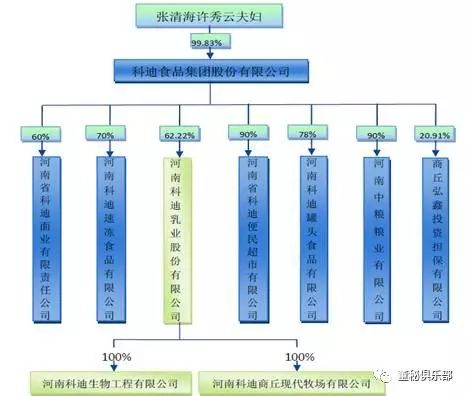 科迪食品集团,是河南商丘当地一家食品龙头企业,是2015年6月上市的科迪乳业(002770.SZ)的大股东;旗下还拥有很多其他公司。虽然是一家民营企业,但是可以说是商丘当地人民的“衣食父母”,对于当地的经济、社会发展都非常重要。科迪集团架构如下: